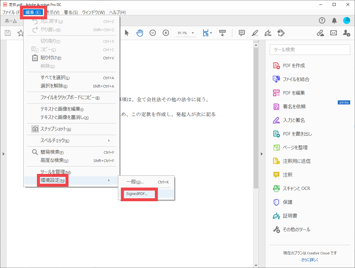 「Adobe Acrobat DC」を起動させ事前設定を行います。